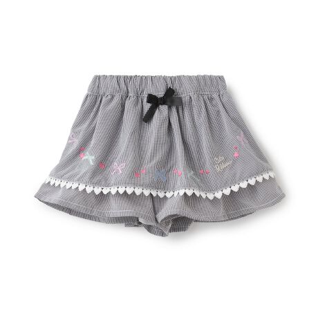 ハートとリボンの可愛い刺しゅうがポイントになったキュロットです。あたたかい季節に映えるギンガムチェック柄で、女の子らしい雰囲気を演出。裾にあしらったレースが着こなしにさりげないアクセントを添えてくれます。カジュアルなトップスと相性良く決まり、ちょっとしたお出かけからデイリーユースまで幅広く活躍するアイテムです。【おすすめの着用時期は春夏シーズン】
