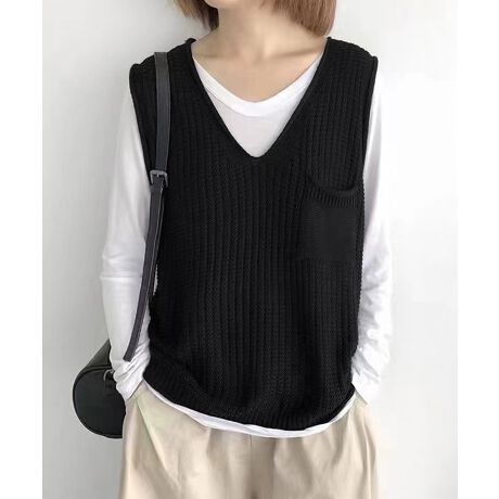 トレンドのレイヤードコーデにぴったりなVネックニットベスト。