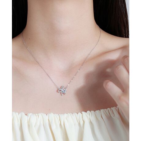 リボンとハートモチーフを組み合わせた、フェミニンな印象のネックレス。