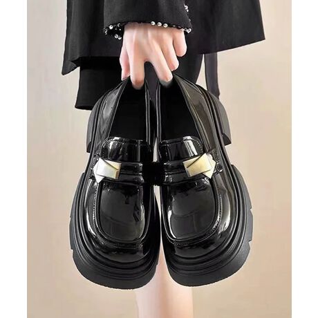 ボリューム感のある厚底ソールと、メタルモチーフが映えるローファーシューズ。