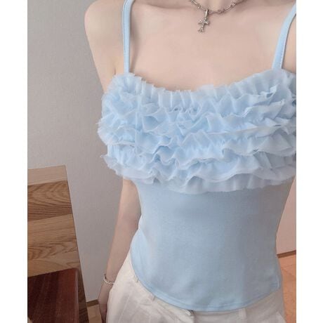 胸元のボリュームフリルが目を引く、トレンド感溢れるキャミソール。