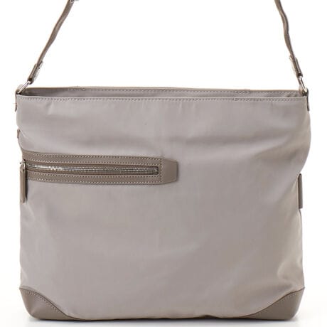 フロントのアシンメトリーなレザーフレームファスナーポケットをポイントに、ミニマルなレザーパーツ配色を意識した、シンプルで飽きのこないムードに仕上げました。