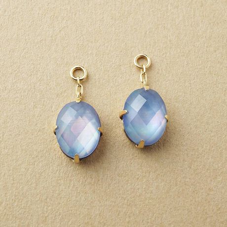 ラピスラズリ(12月誕生石)、ホワイトシェル、ホワイトクォーツの3石を貼り合わせたトリプレットストーンを使用しました。奥行きのある輝きとニュアンスのあるカラーはトリプレットだからこそ実現できる表情です。