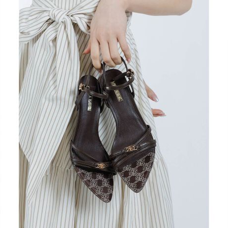・甲にかかるアシンメトリーのベルトが女性らしい印象を演出