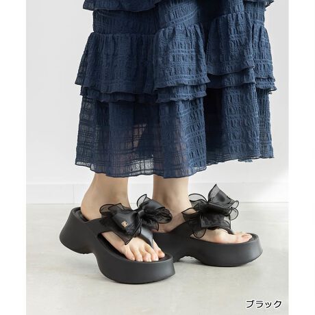 シーズンムード高まるシアーリボンが目を惹くトングサンダル。