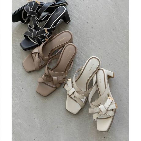 アシンメトリーリボンデザインがフェミニンな印象のミュールサンダル。
