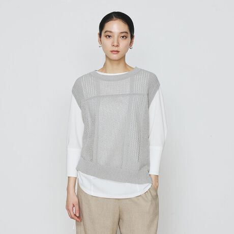 脇付近は透けない編地に切り替えることで、Iライン見えするのでスタイルよく着こなせます。