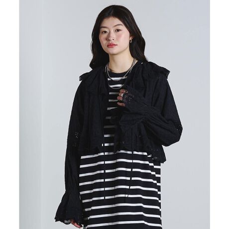 ・衿と袖のフリルデザインでデコラティブな表情