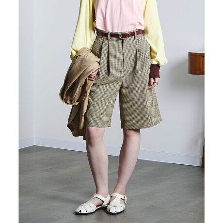 チェック柄でもきれいめに見えやすく、バミューダでも大人っぽく穿ける一枚です。