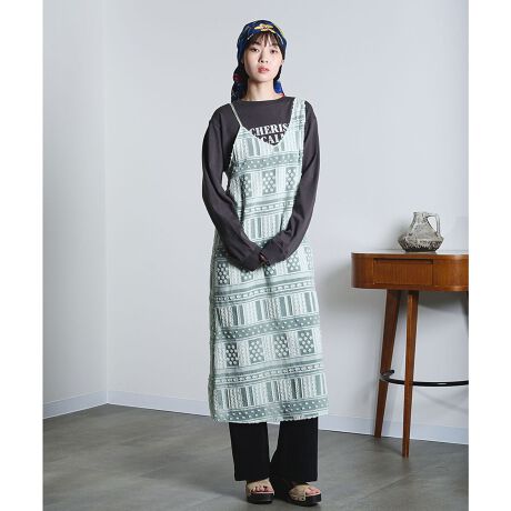 新素材で再登場するパッチワーク風カットジャガードのキャミワンピース