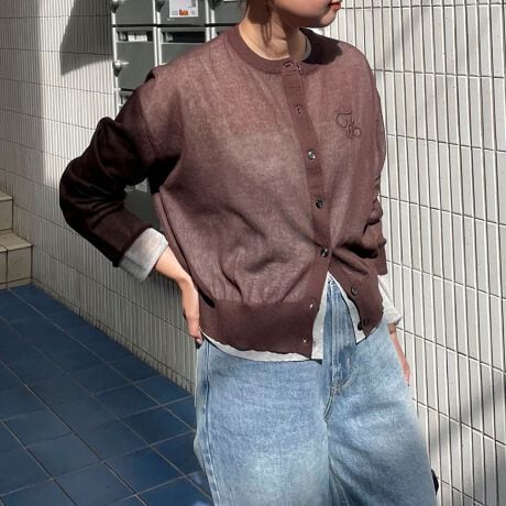 ・シアー感のあるニット素材にワンポイントのFR刺しゅうを施した軽やかなカーディガン