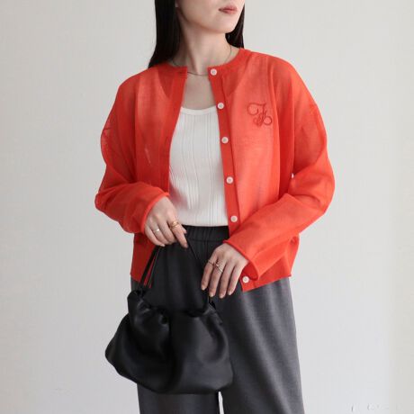 ・シアー感のあるニット素材にワンポイントのFR刺しゅうを施した軽やかなカーディガン