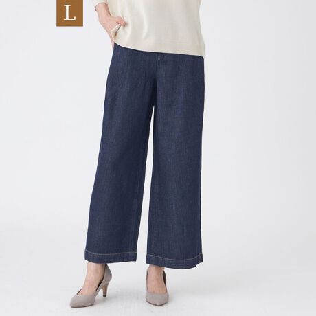 【L】【ウォッシャブル】ブレンドデニムワイドパンツ