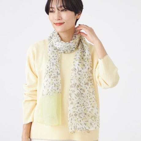[型番:U5751771__]【ウォッシャブル】ニュアンスシルクストール肌ざわりの良いシルク素材、透け感があり1年を通して長くお使いいただけるストールです。巻くだけでお顔周りがふわっと明るくなるようなニュアンスチーター柄になっております。