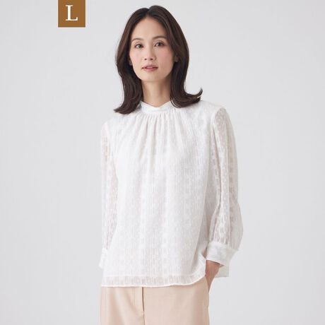 【L】【ウォッシャブル】シフォンカットジャガードブラウス