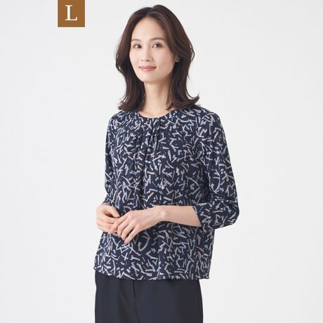 【L】【ウォッシャブル】強撚スムースプリントブラウス