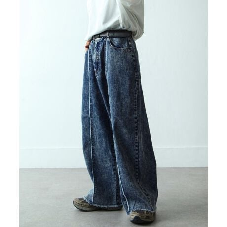 シルエットは太めでウエストから裾までストンと落ちるワイドストレートになっています。