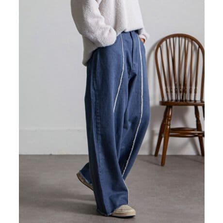 シルエットは太めでウエストから裾までストンと落ちるワイドストレートになっています。