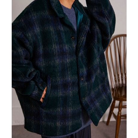 今期トレンドの毛足の長いシャギー素材がシーズンを感じさせるオーバーサイズチェックジャケット。