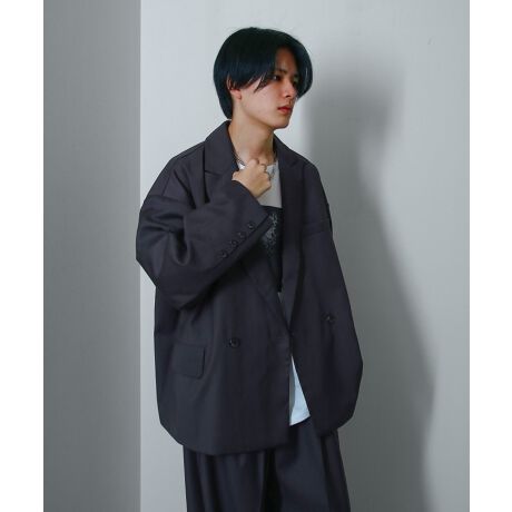 配色ステッチダブルテーラードジャケット。