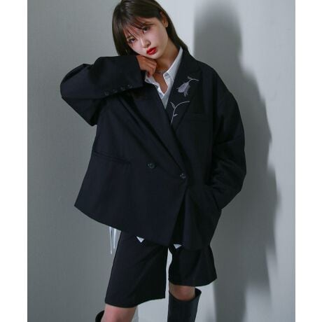配色ステッチダブルテーラードジャケット。