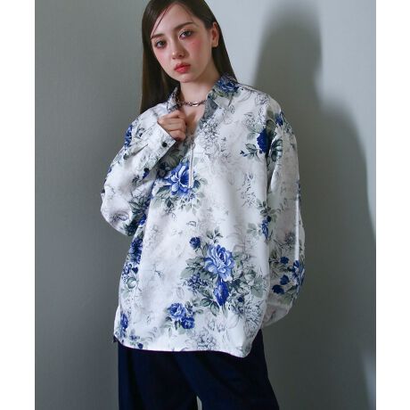 1枚で様になるトレンドのハーフジップ長袖 柄シャツ。
