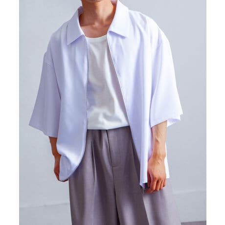 ドレープルーズシルエットジップレギュラーカラー半袖シャツ。