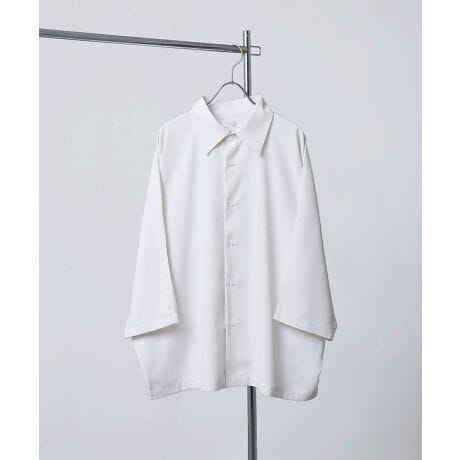 ドルマンシルエットのオーバーサイズレギュラーカラーシャツ。