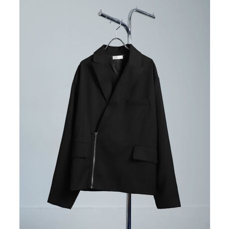 通常のテーラードとは異なり、ボタンディテールの部分がジップ仕様になったジャケット。