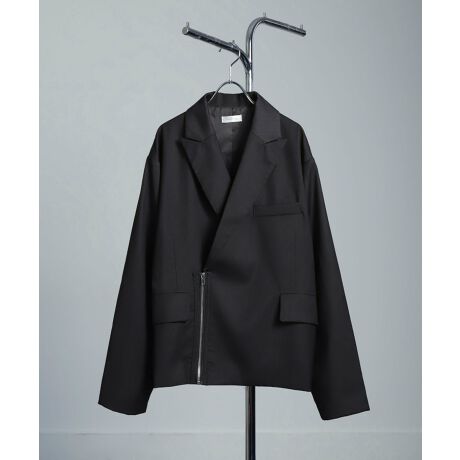 通常のテーラードとは異なり、ボタンディテールの部分がジップ仕様になったジャケット。