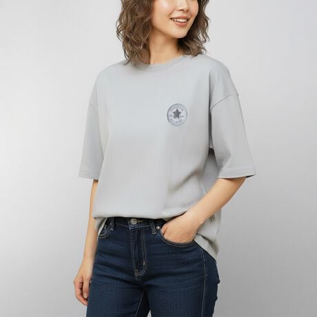 左胸にCONVERSE(コンバース)のサガラパッチをあしらった、さりげないアクセントが魅力のTシャツ。立体感のあるパッチがシンプルなボディに表情をプラスし、1枚着でも程よく存在感のある仕上がりです。カジュアルからデイリーまで、幅広いスタイルに取り入れやすいデザインです。