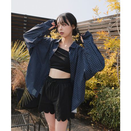 ネイビードットは、小さめなドットになっているので綺麗めなコーディネートにも仕上がります。