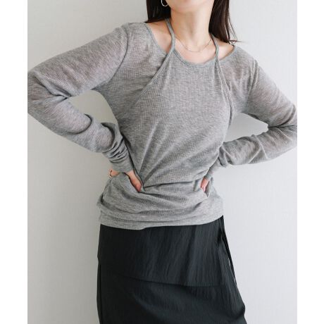 シアーリブ・ホルターレイヤード長袖トップスが新登場!