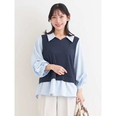 伸縮性:なし(シャツ部分)あり(リブカットソー部分)