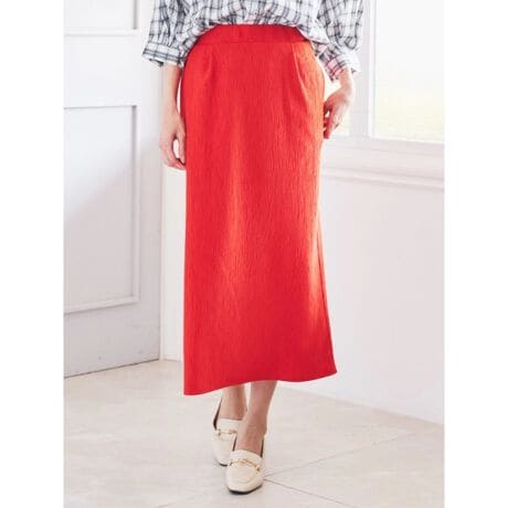 表情のあるウェーブジャカード素材が目を惹く、ナローシルエットのロングスカート。