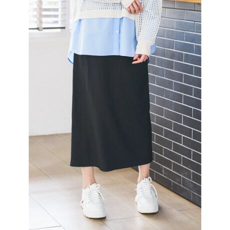 表情のあるウェーブジャカード素材が目を惹く、ナローシルエットのロングスカート。