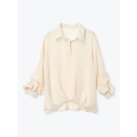 [型番:26550727638]抜け感のある襟元とシルエットが、大人らしいこなれた印象のスキッパーシャツ。前裾のデザインがポイントになり、デニムを穿いて大人カジュアルに、テーパードパンツやスカートと合わせてきれいめにもおすすめ。一枚でサマになる、オンオフ問わず活躍する万能アイテムです。