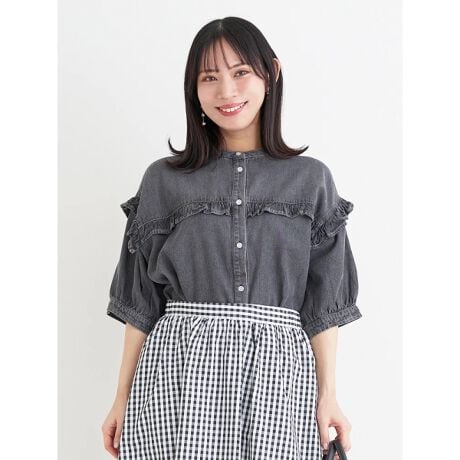 デニム素材×フリルで甘くなりすぎない大人のデニムシャツ