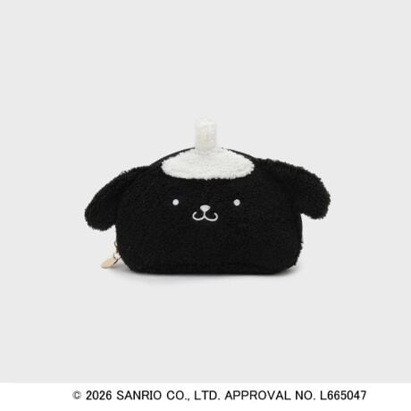 ポムポムプリンのお顔が立体的にプリントされた使いやすいサイズのシェル型ポーチ。