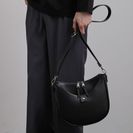 柔らかな曲線で構成された、独創的なデザインが魅力のショルダーバッグ。