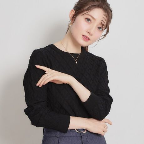 凹凸感のある柄なのでほどよく体にフィットし、体のラインが目立ちにくくなっています。