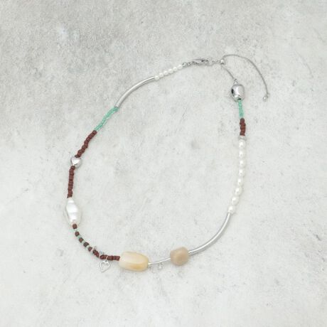 ネックレスを主役に、他のアクセサリーはミニマルにまとめると洗練度が上がります。