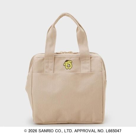 通勤・通学シーンにも映える保冷ランチトートバッグは、ポムポムプリンの可愛い刺繍が施されています。