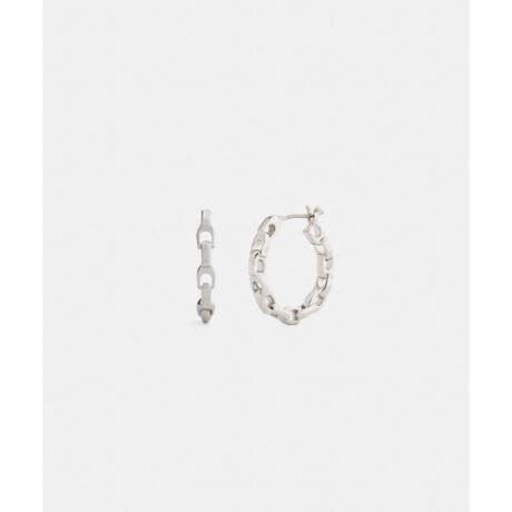 個性的なデザインが魅力の、小ぶりなフープ ピアス。コーチの“C”チェーンをあしらったアイコニックなコーチスタイルです。チタンポストで仕上げたクリック開閉式です。