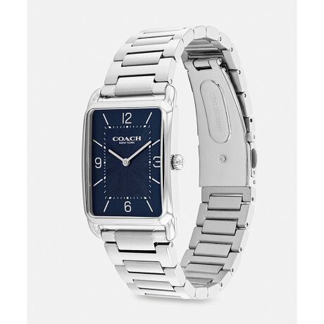 ゴールドトーンのレクタンギュラー ケースにブレスレットを採用。文字盤の中心部分にテクスチャー加工を施し、スティック マーカーと数字マーカーをスタイリッシュにあしらいました。