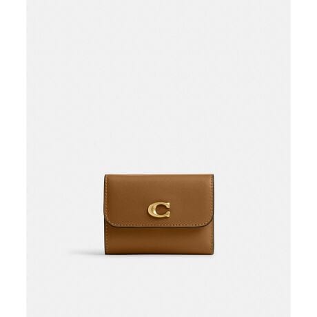 コンパクトなデザインながら整理整頓しやすい、カードホルダー付き三つ折り財布。リファインド レザーにコーチの“C”のハードウェアが目を引きます。
