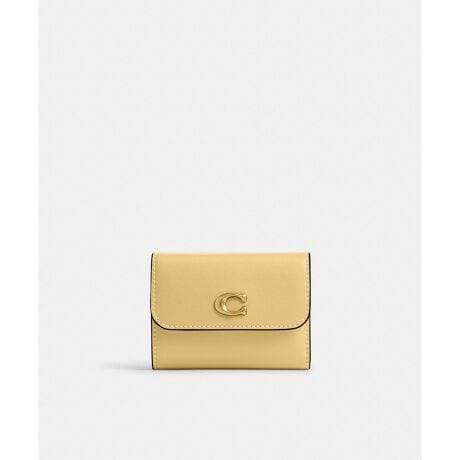 コンパクトなデザインながら整理整頓しやすい、カードホルダー付き三つ折り財布。リファインド レザーにコーチの“C”のハードウェアが目を引きます。