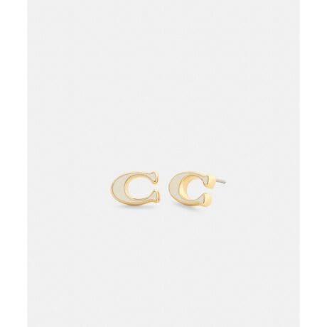 コーチのスカルプテッド“C”をエナメルであしらった、スタッド ピアス。普段使いにぴったりなスタイルです。チタン製ポストに、着脱しやすいラウンド型キャッチを採用したポスト&キャッチ式です。