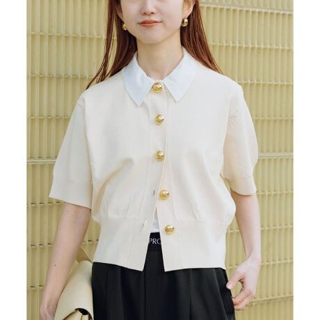 オフホワイト×ホワイト襟:襟が自然に馴染むことでデイリーに着こなせるカラー。