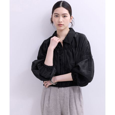 コンパクトな着丈で身頃と袖にたっぷりとギャザーを入れ陰影を付け、透け感にニュアンスをプラス。